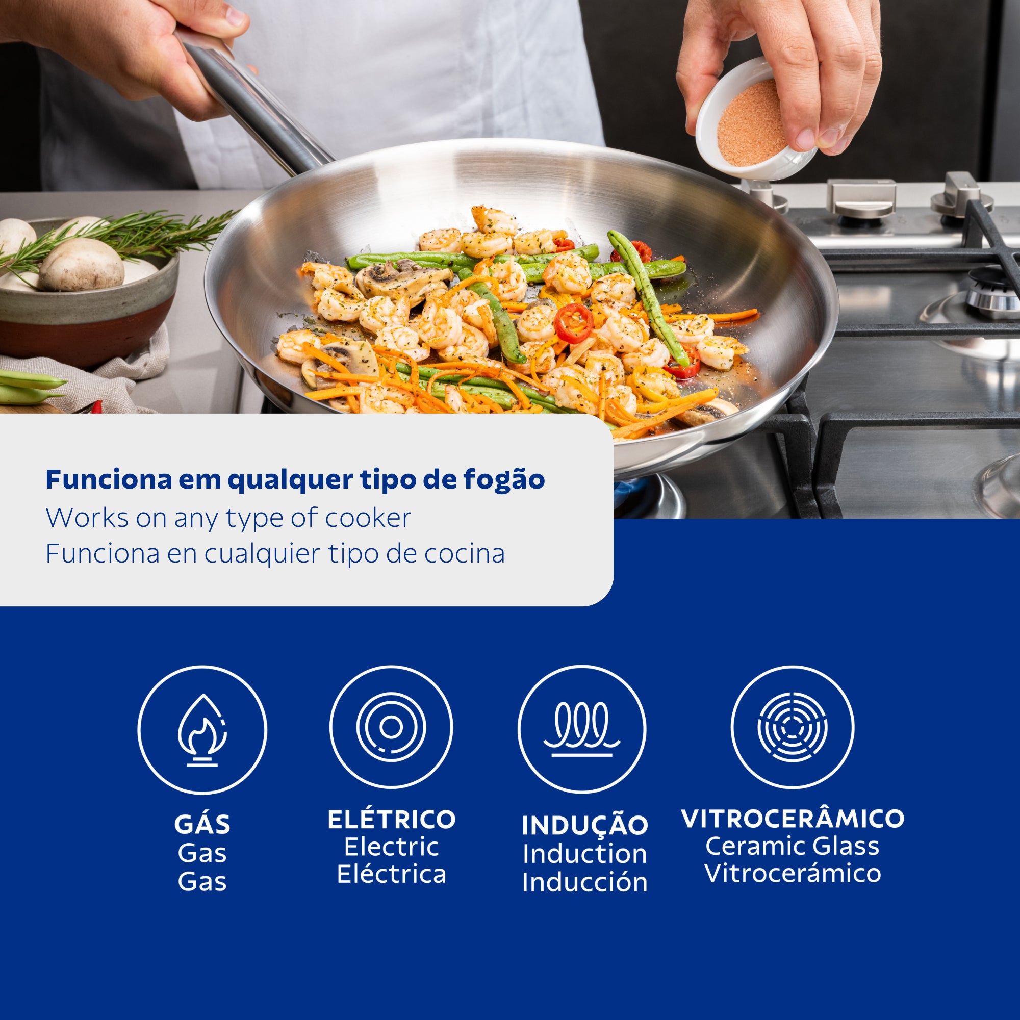- It can be used on gas, electric, vitroceramic glass and induction.