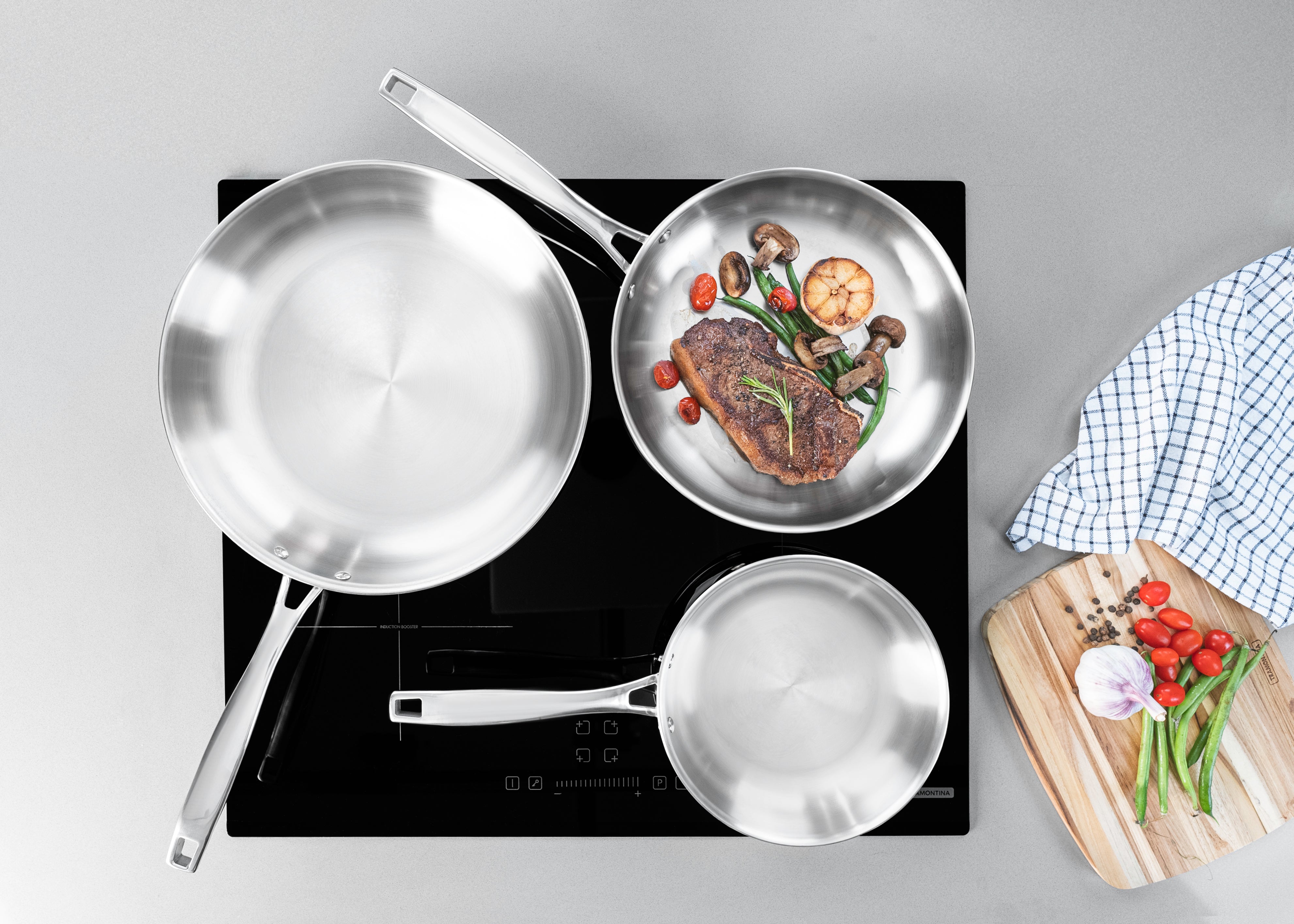 • The frying pan has a modern design and highly shiny finish, and can be set on the table.