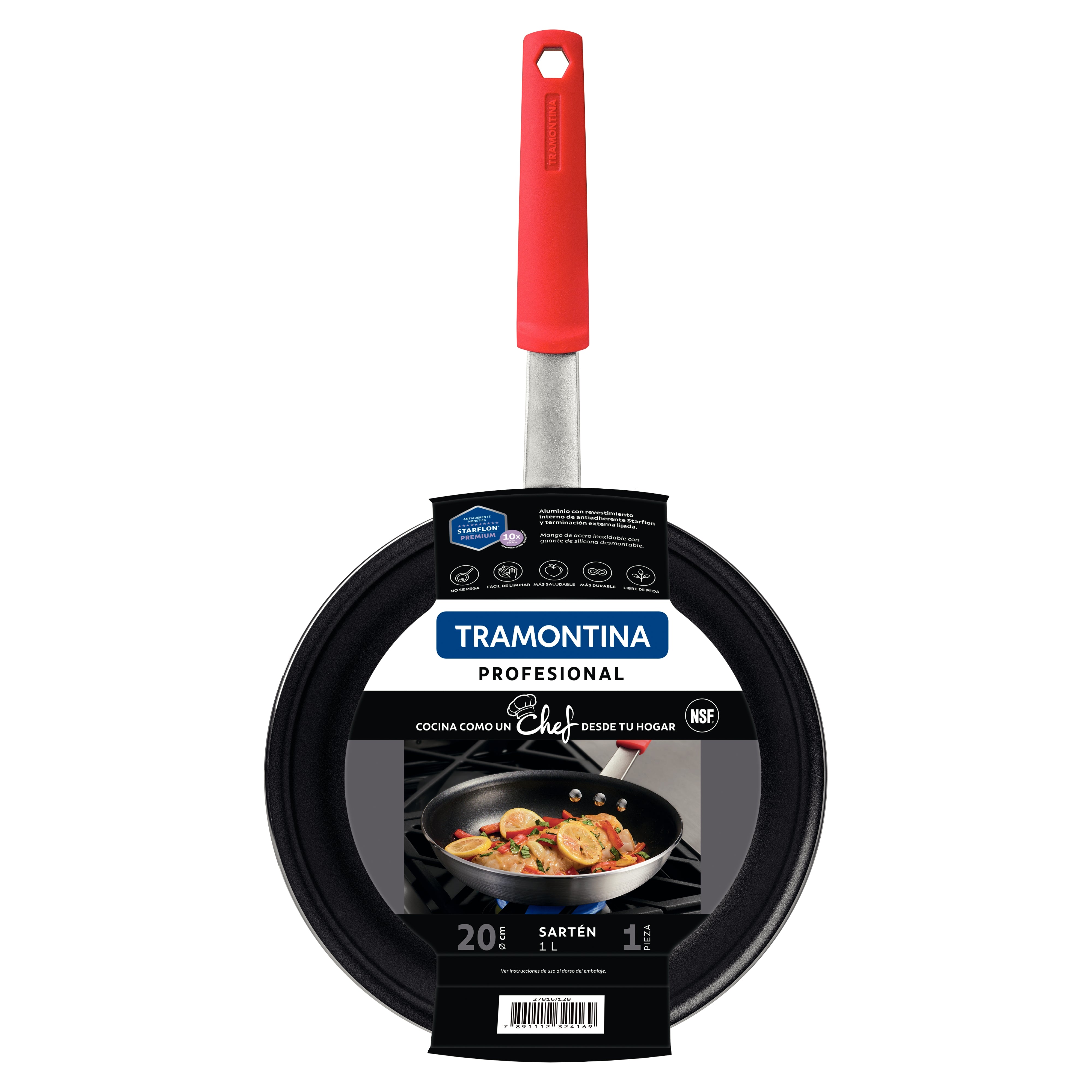 High quality and efficiency for your kitchen with Tramontina's aluminium frying pan with Starflon Premium internal coating and brushed exterior, 20 centimetres in diameter and 1-litre capacity.