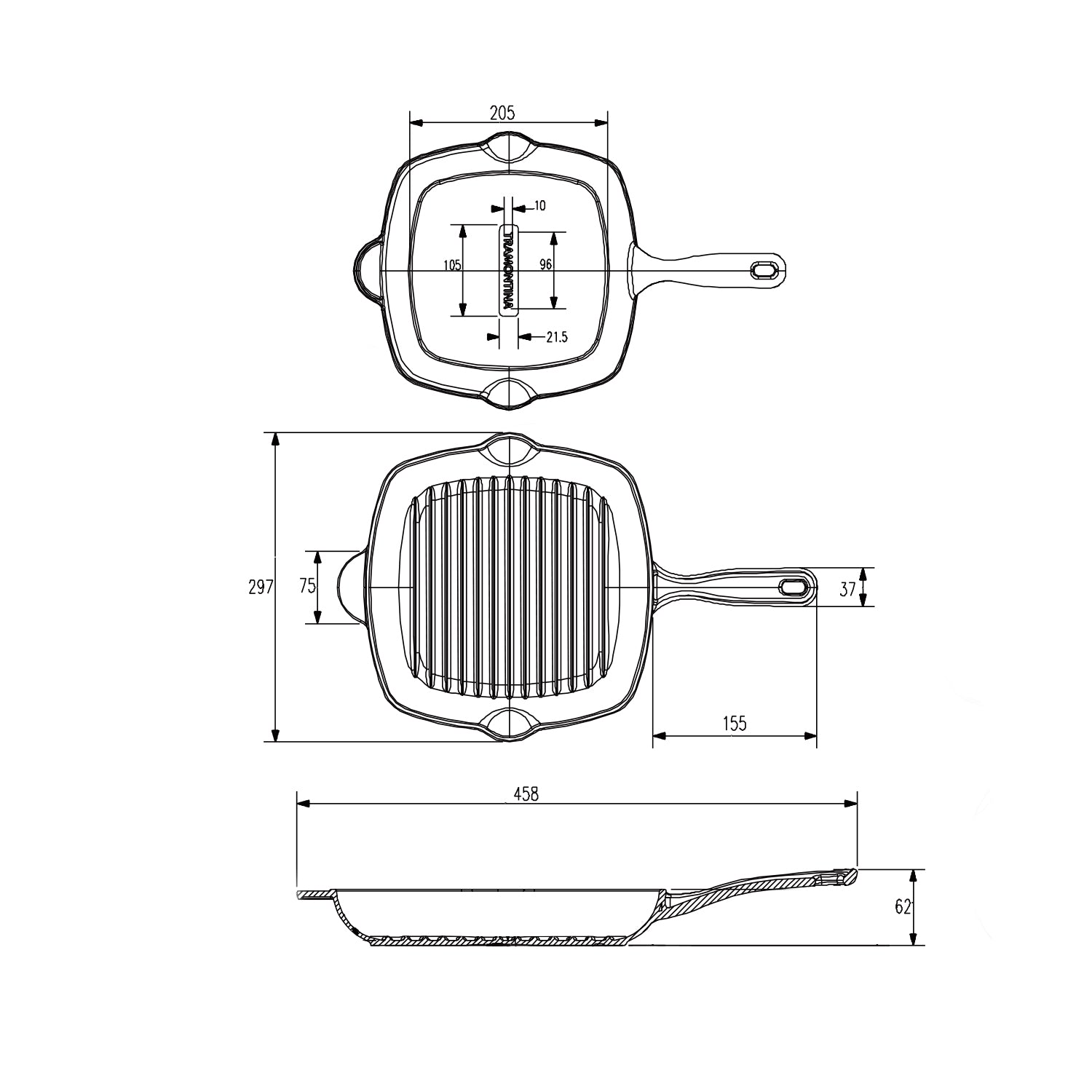 Pre-Seasoned Cast Iron Square Griddle Pan, 27cm