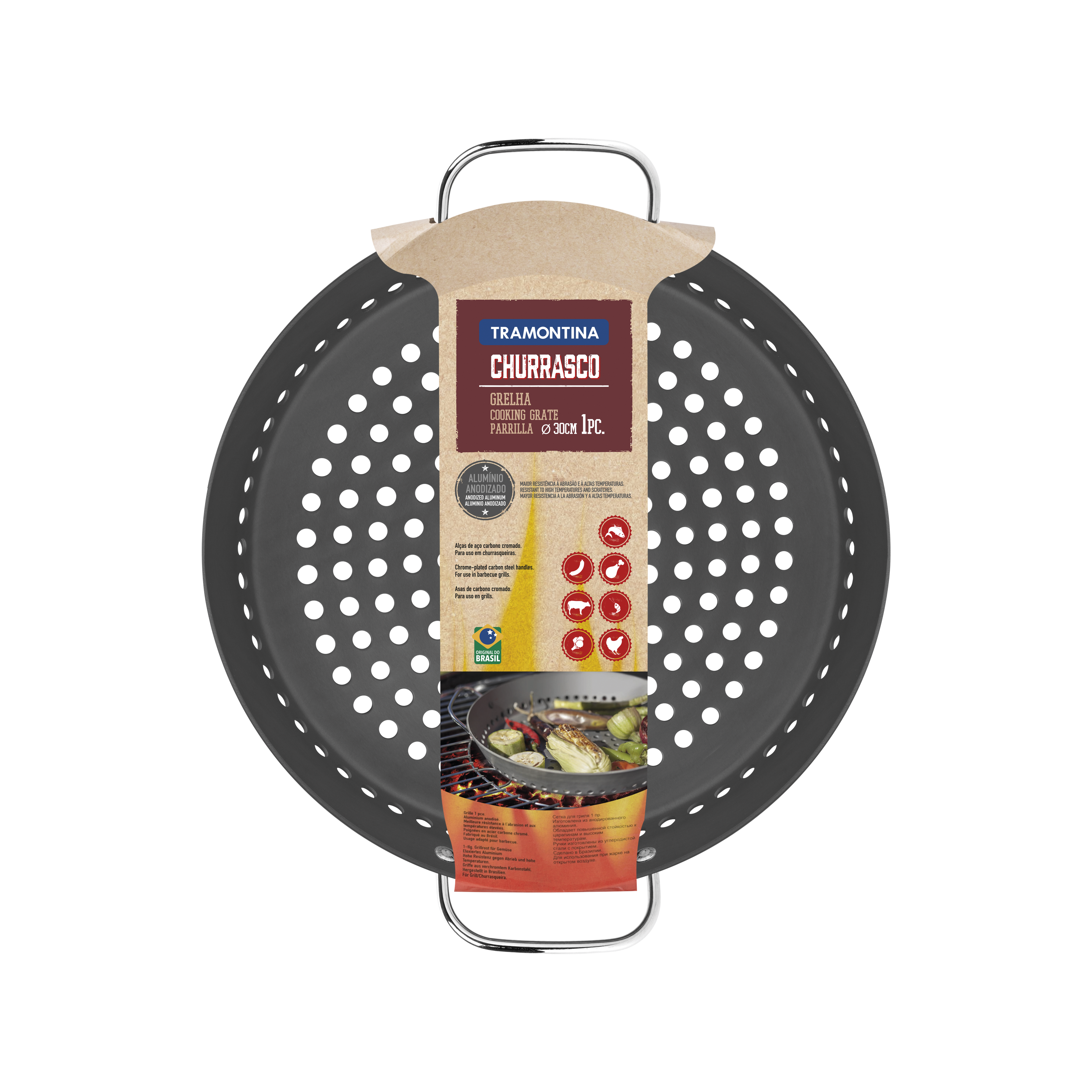 A really good barbecue is one that everyone can enjoy! And with the Tramontina Churrasco aluminium grill with graphite anodized finish, 30 centimetres in diameter, it will be even easier to appreciate that moment with friends and family, preparing for all the different palates. With the grill, you will be able to grill zucchinis, eggplants, bell peppers, chicken, fish, and other delicious food. Tramontina's Barbecue line was created for those who cannot do without delicious, convenient preparations. For that reason, the grill is easy to clean, does not rust, does not flake, and lasts for a much longer time. Preparing your recipes will become much easier!