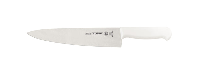 The Tramontina Professional 10-inch meat knife with a stainless-steel blade and white polypropylene handle with antimicrobial protection is perfect for preparing that delicious stroganoff for the whole family. Made of stainless steel, the blade will offer precise cutting, in addition to all the durability inherent to the material. The handle is made of white polypropylene, lending that sophisticated touch that only comes with the colour white. However, the knife's true distinction lies in its antimicrobial protection, which inhibits and reduces the growth of bacteria and fungi. Tramontina brings convenience and innovation.