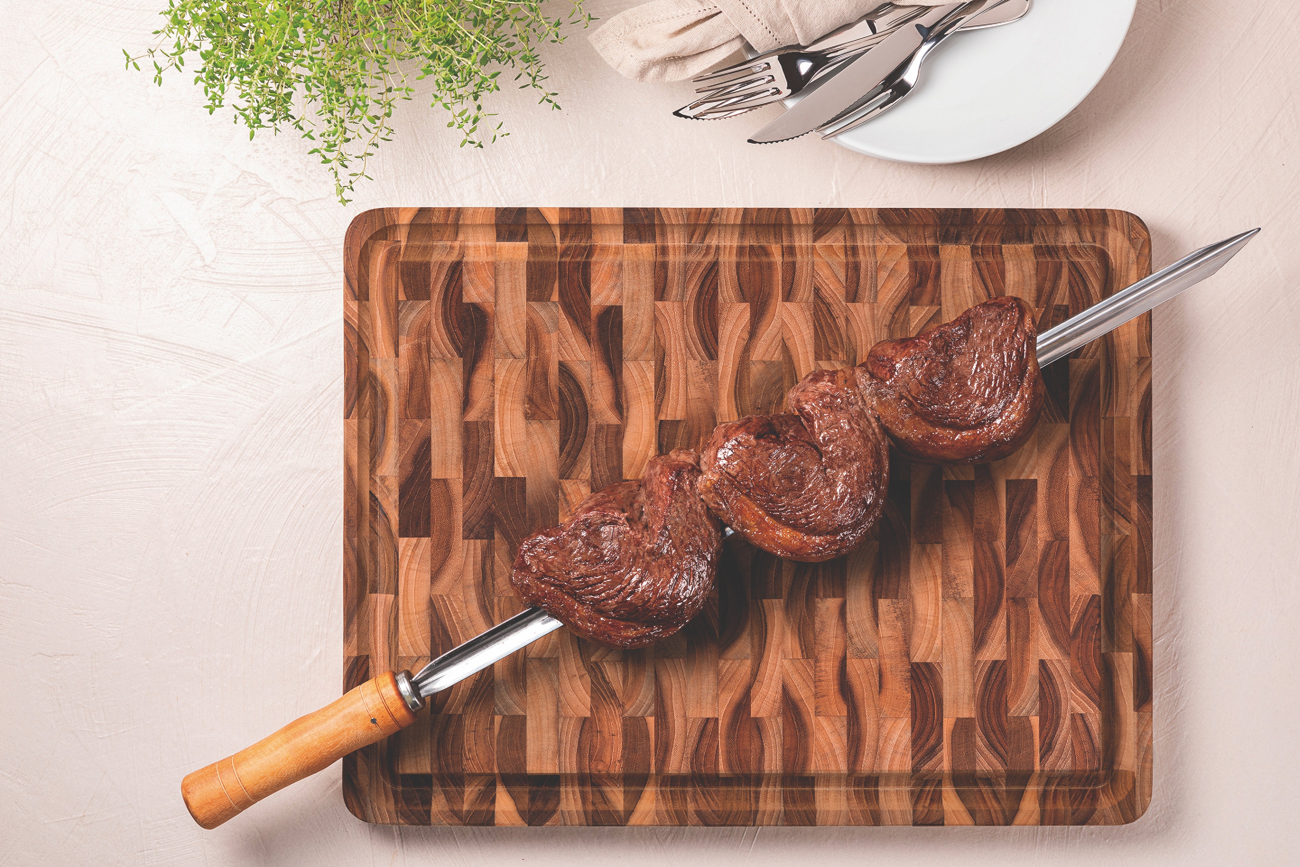 The Tramontina Rectangular Cube End Grain Barbecue Board in FSC Teak Wood with Mineral Oil Finish, 45x34 cm., from the Churrasco line is perfect to be part of that celebration when serving the barbecue. The piece is produced in inverted wood that brings all the beauty and quality of Tramontina products.