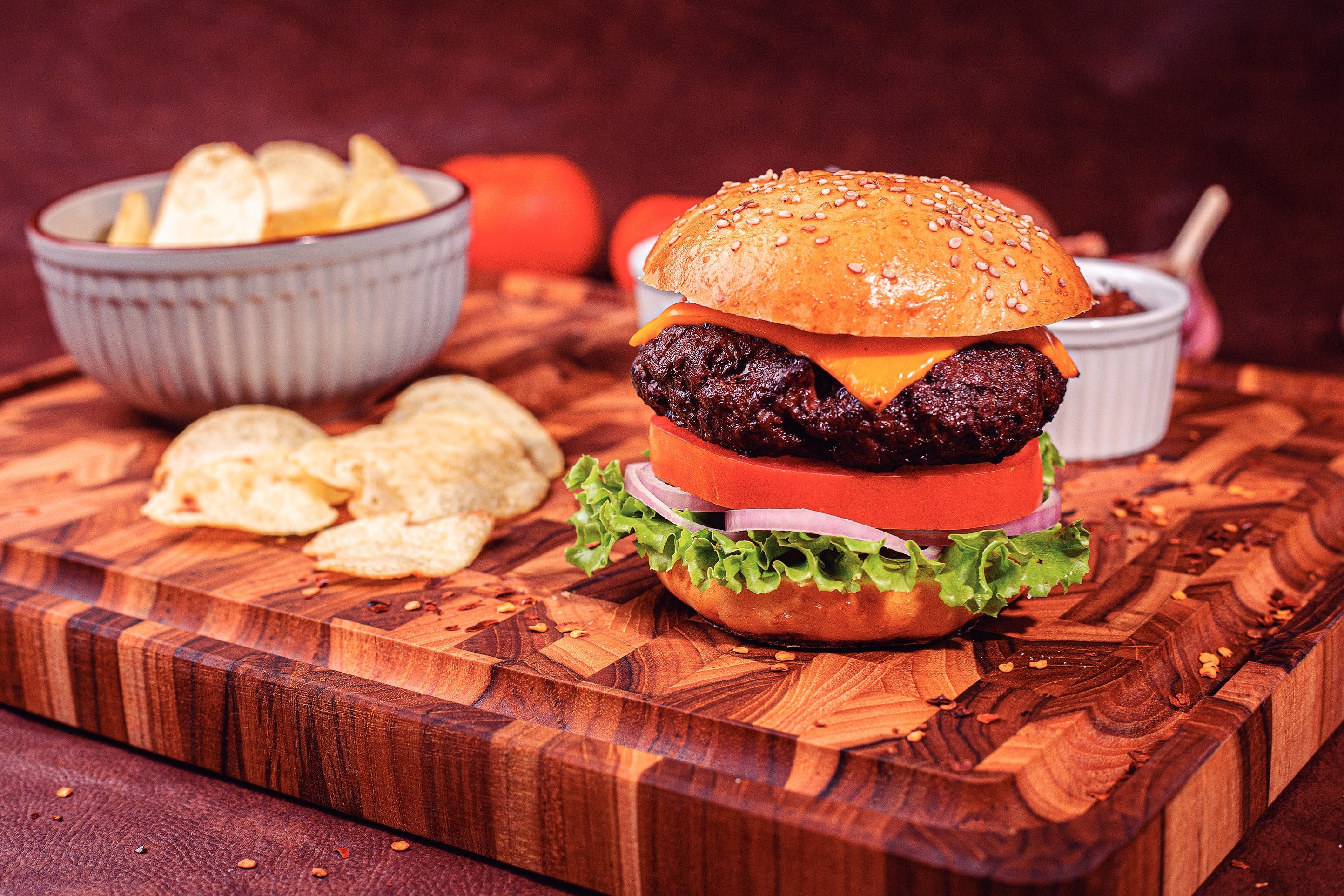 End Grain Barbecue Chopping Board, Teak Wood with Mineral Oil Finish, 46x35cm - FSC Certified