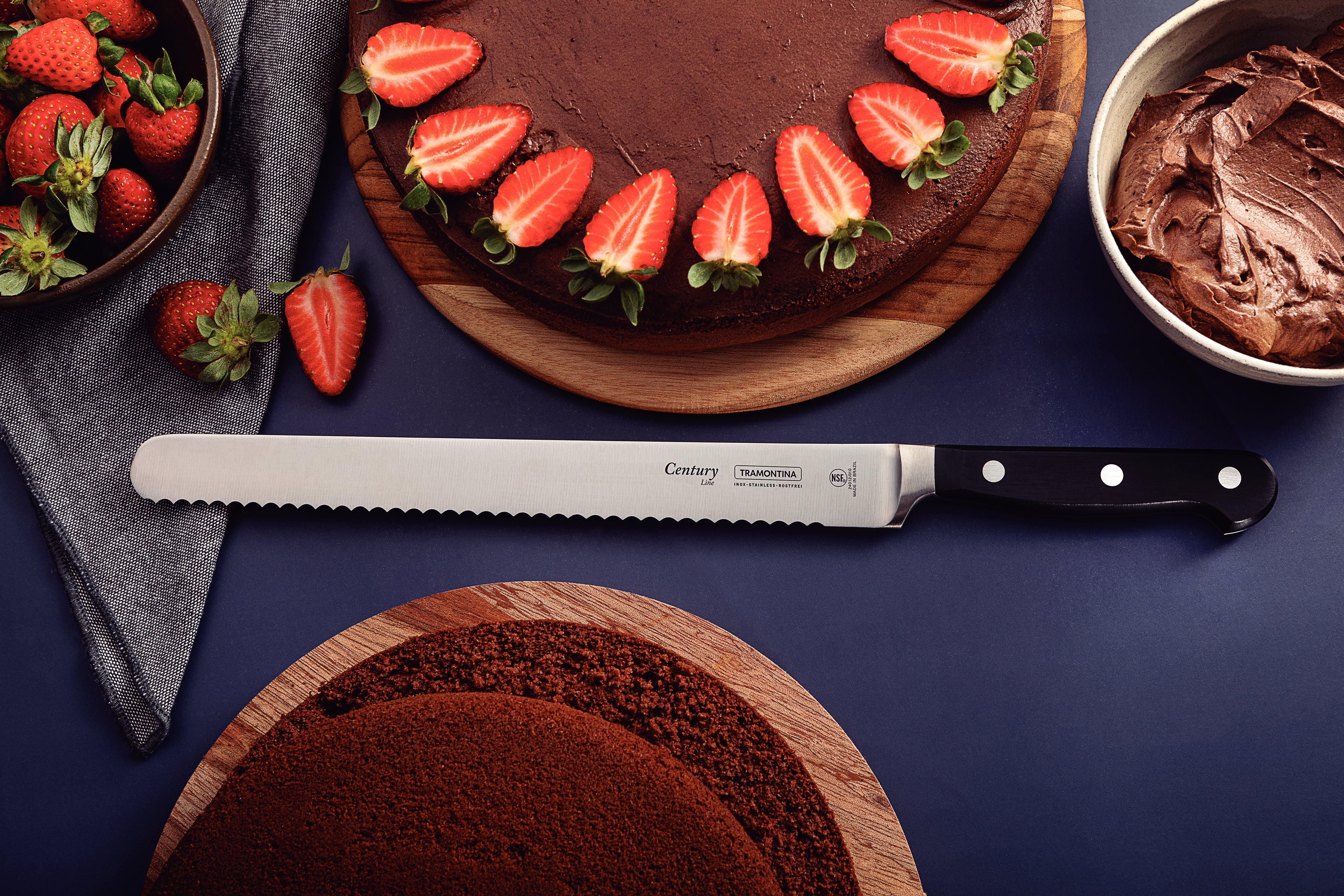 • With its long, serrated blade, it is ideal for cutting and preparing cakes and pies.