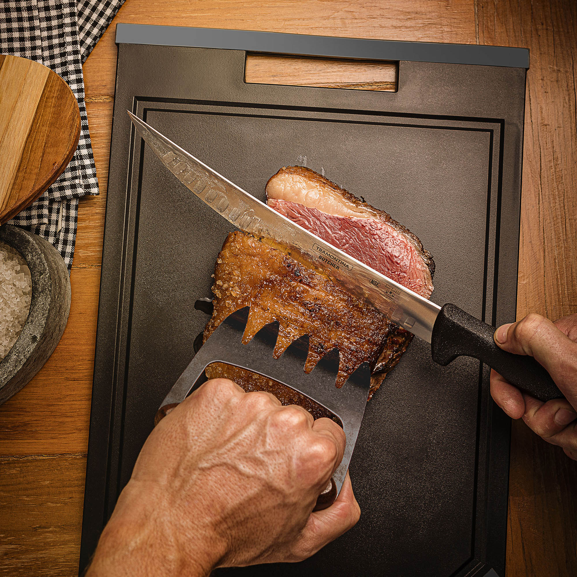 With the Tramontina Churrasco Black meat knife with blackened stainless steel blade and 10 inches wooden handle, it is much more convenient to serve the best meats on your barbecue and with the guarantee of a high-quality cutting edge.