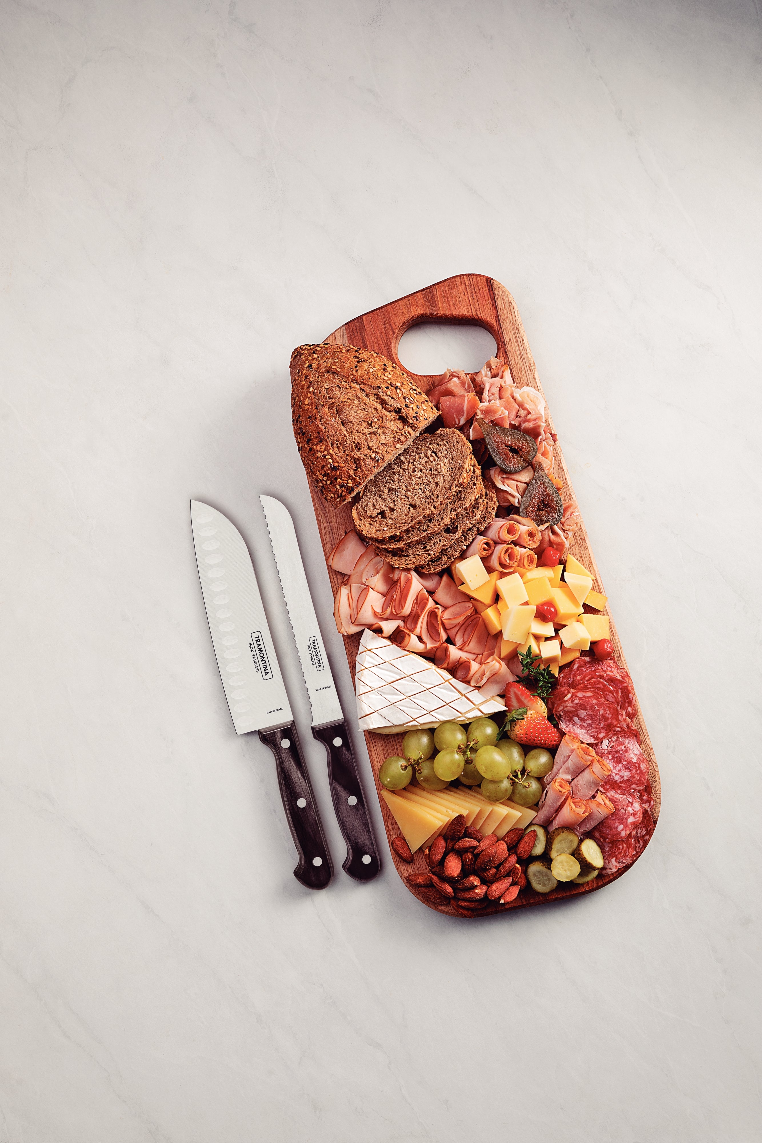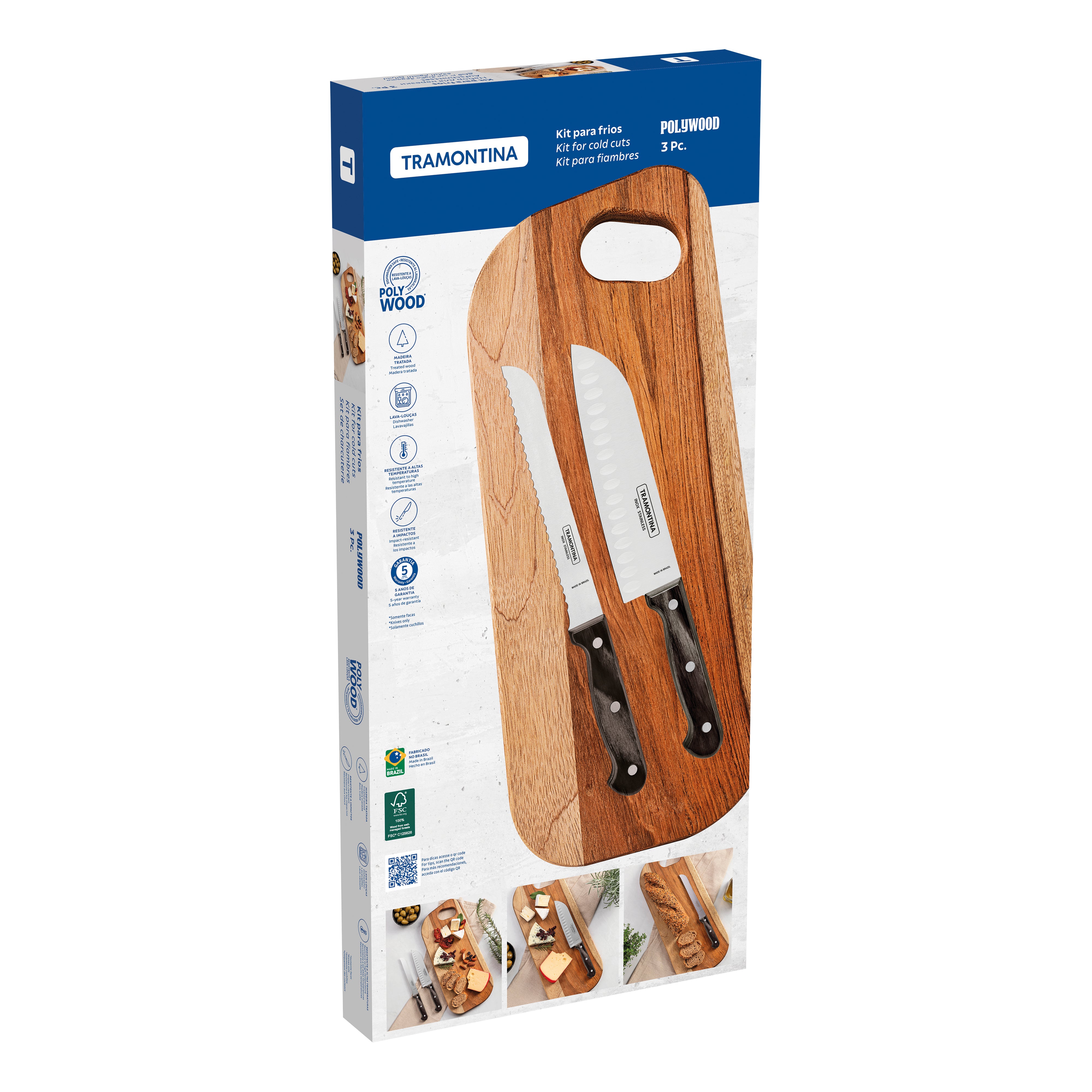 The Tramontina Polywood 3-piece cold cut kit with stainless-steel blades and treated brown polywood handles is the perfect choice for those who appreciate quality and elegant food presentation. Ideal for serving and preparing cold cuts, cheeses and other foods, the kit includes a cutting board that makes preparation and service simple and practical while being easy to clean. The knives feature highly durable blades, while the treated wood handles offer resistance and a sophisticated design that stands out on any table. The kit is essential for those who want to combine functionality and style when serving, making every meal a special experience. With the reliability of the Tramontina brand, you will have durable and efficient utensils for a long time.