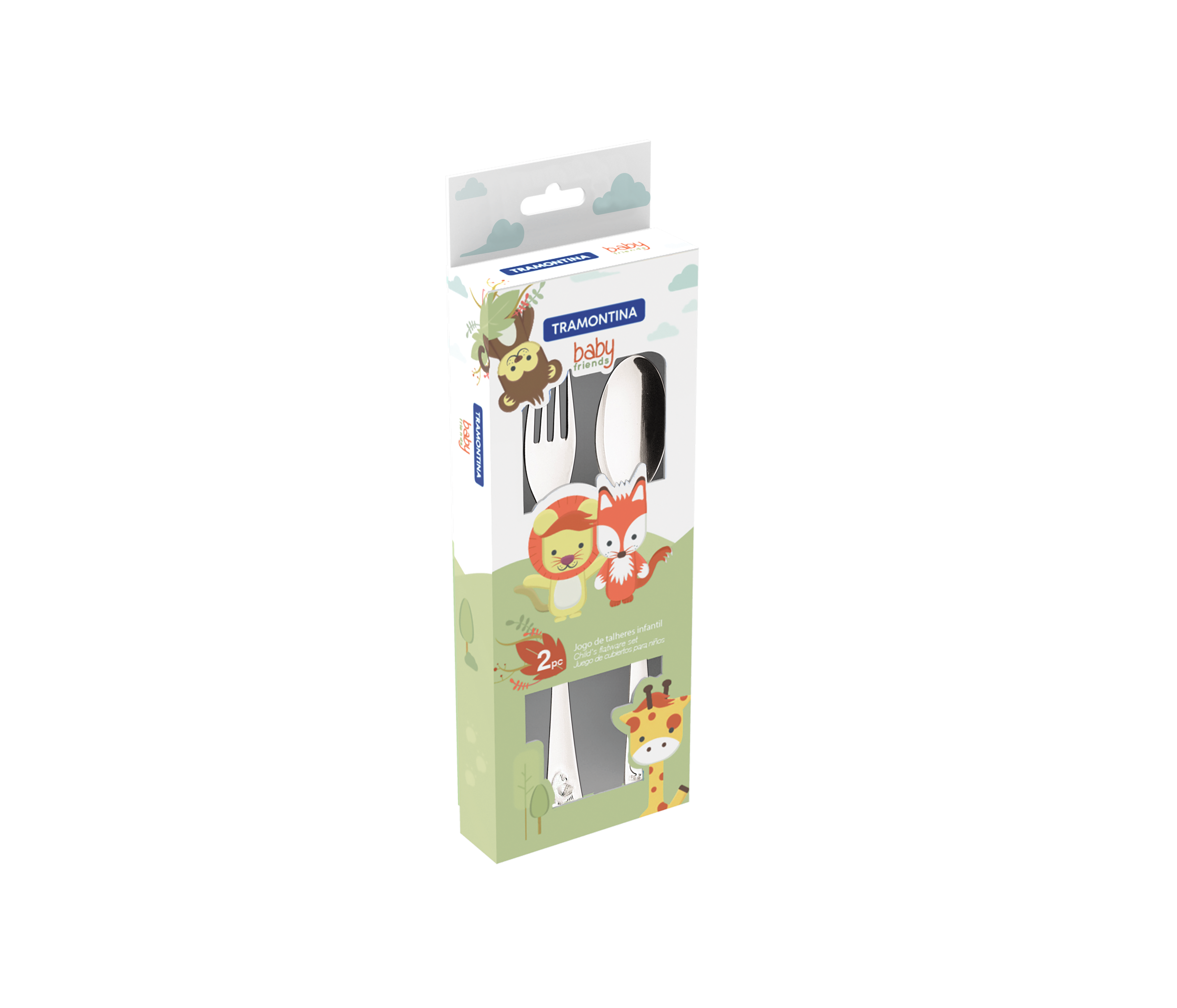 To encourage children's autonomy and to make meal times more fun, Tramontina's 2-piece stainless steel children's flatware set with a glossy finish and relief pattern from the Baby Friends children's line is the best choice. The pieces have assorted relief engravings and each piece is different. The perfect choice for mums and dads looking for convenient, high-quality products for their little ones. These highly resistant flatware pieces are entirely made of stainless steel, which does not release any particles into the food, thereby keeping it healthy. The pieces have an ergonomic shape that allows children to use them easily. They can be washed in the dishwasher daily.