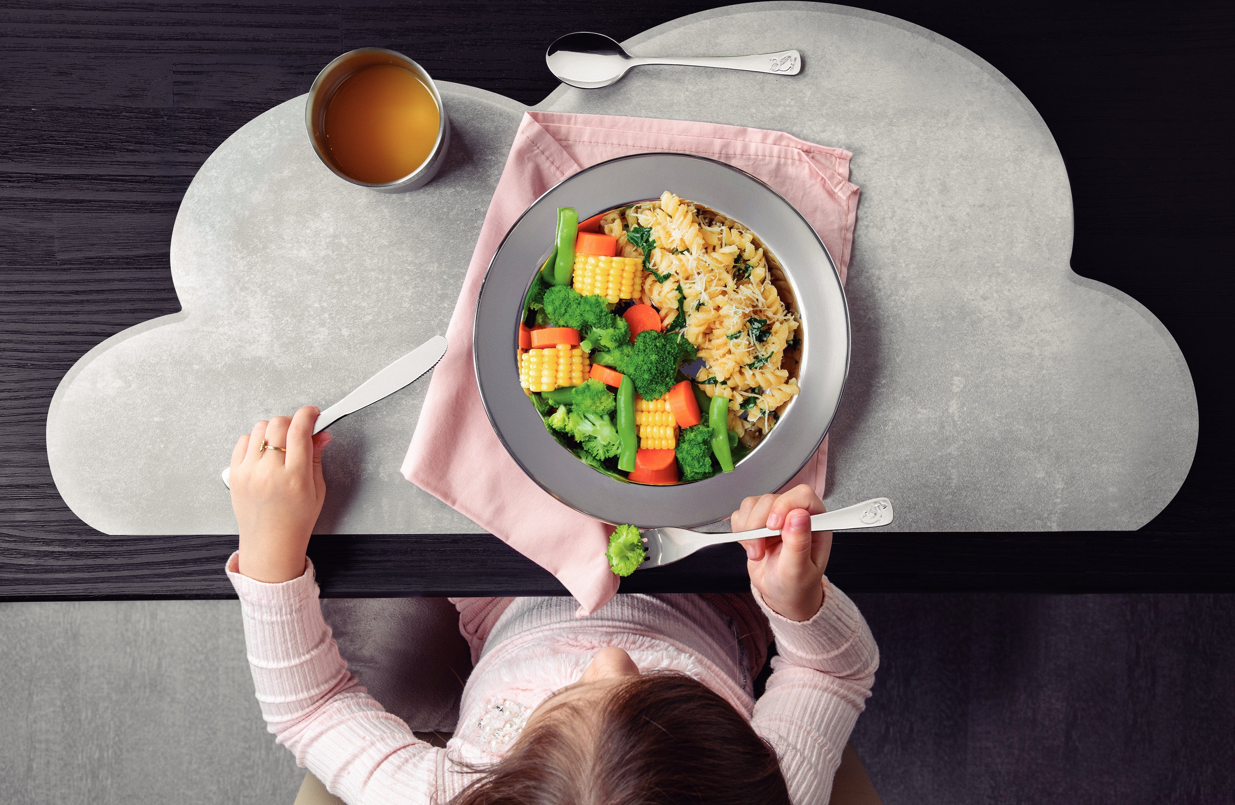 Recommended for children ages 36 months or older. Use only soap or detergent and a soft sponge to wash. Other products such as steel wool can scratch or damage the cutlery's shine. Rinse each piece well to completely remove the residue of the cleaning products that are abrasive and can damage stainless steel. Use warm water whenever possible as it renews the cutlery's shine. After washing, dry the tableware immediately otherwise the chemical substances in water (chlorine) can stain the tableware. Do not allow the tableware to rub against each other during washing and storage to prevent scratches Avoid contact with hot surfaces. They can cause the colours to fade. Do not store items in a humid place as it can cause stains. When using a dishwasher, we recommend removing the cutlery as soon as the rinse cycle is finished and dry them by hand.