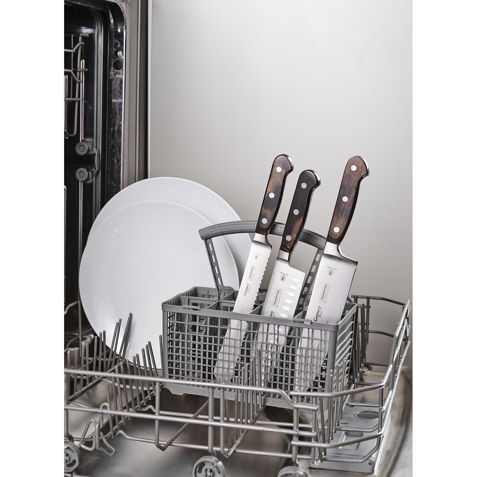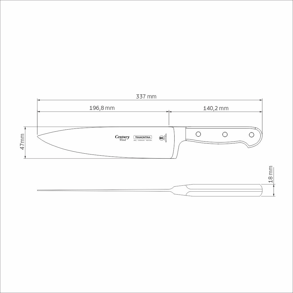 With the Tramontina Century Wood 8-inch chef's knife with stainless-steel blade and brown treated-wood handle, you will have in your hands a culinary masterpiece. It has a special precision-forged stainless-steel blade, which guarantees you excellent cutting power and fantastic edge durability. Its treated-wood handle with stainless-steel rivets provides all the safety and comfort that you require when cutting, slicing, and chopping food, whether you are a professional or amateur in the kitchen. The Tramontina Century Wood chef's knife is extremely convenient and ensures that you will have more time for other tasks, as it can be put in the dishwasher, making clean-up easier. Without a doubt, it is the perfect choice for your improving your cooking skills and crafting real culinary masterpieces!