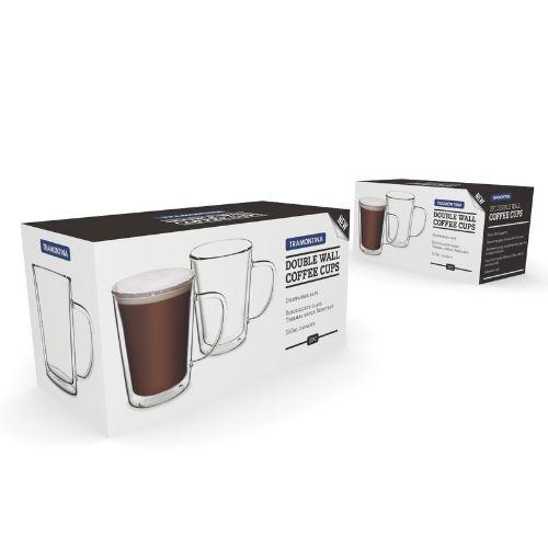 2-Piece Double Wall Glass Coffee Cup with Handles Set, 250ml