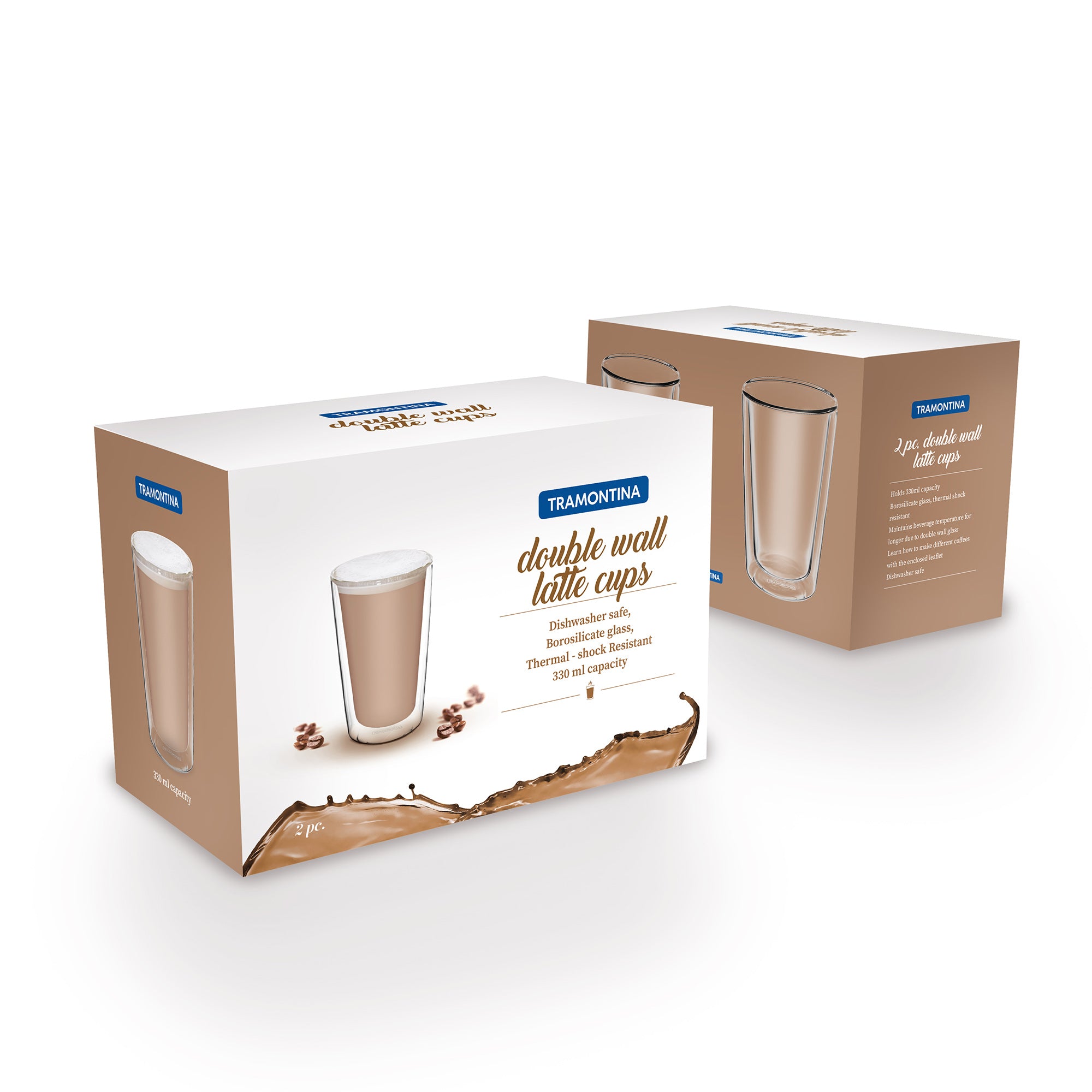 2-Piece Double Wall Glass Latte Cup Set, 330ml
