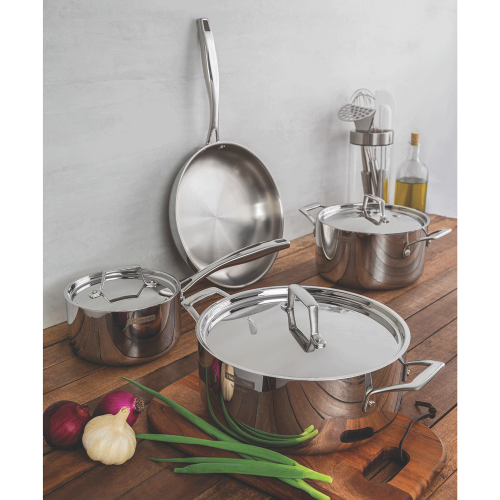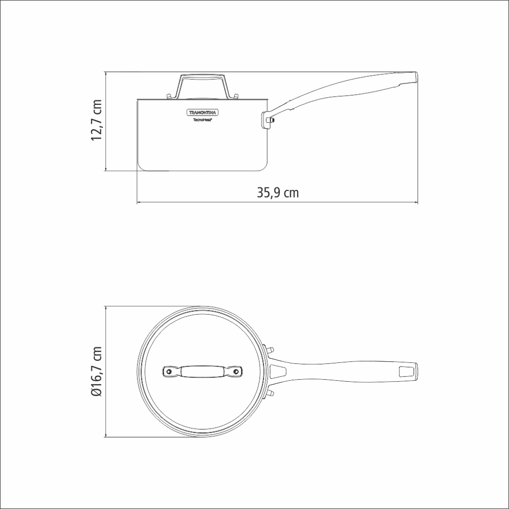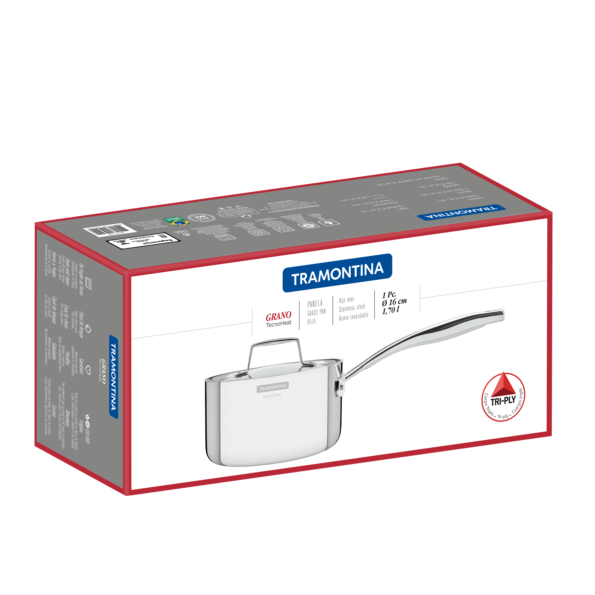 Your cooking experiences will get a special touch with Tramontina's 1.7 L stainless steel saucepan with tri-ply body, lid and long handle from the Grano line.