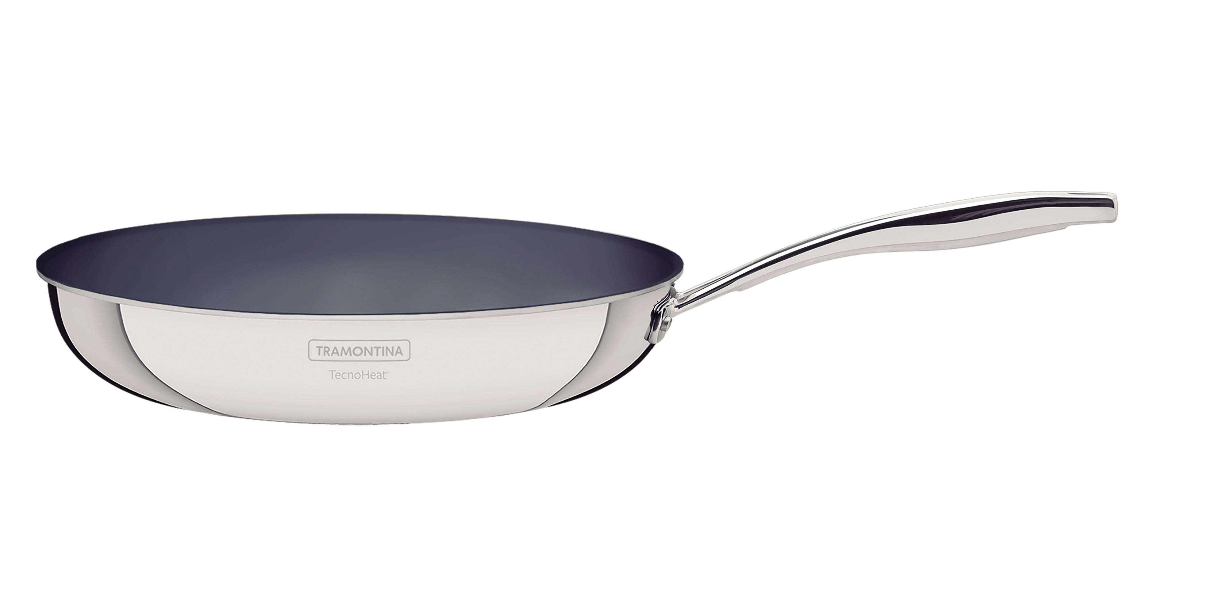 Convenience is the key with this frying pan from the Grano line. Tramontina's 30 cm stainless steel frying pan with tri-ply body (stainless steel + aluminum + stainless steel), which speeds up the cooking process. Its design with round corners makes it much easier to clean. This frying pan has a modern design with a high-gloss finish that allows it to be taken directly to the table. It elevates your dishes with its contemporary ceramic coating, which lets you cook healthier meals with less oil. It can be washed in the dishwasher on a daily basis. This product can be used on gas, electric, glass ceramic and induction cookers.