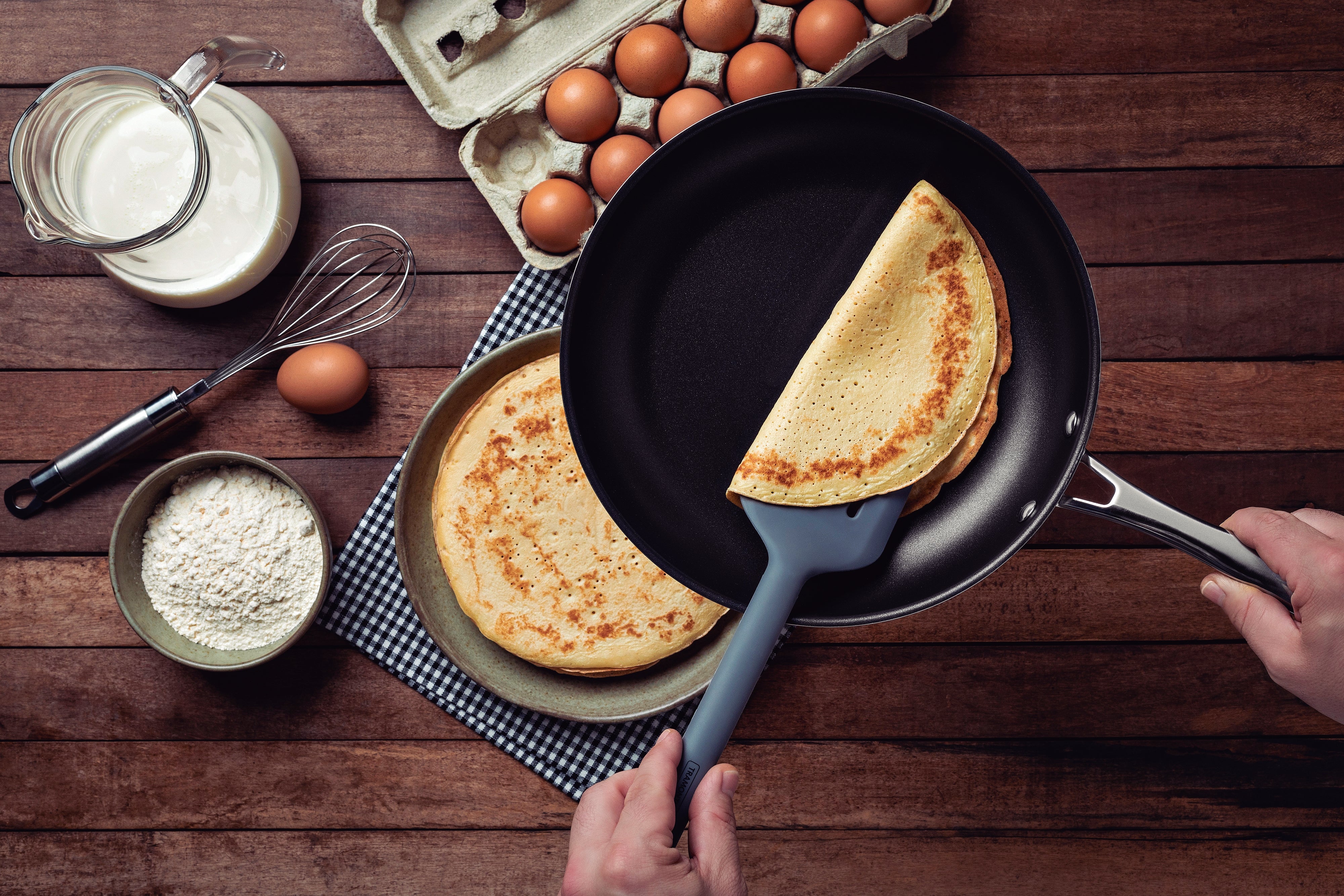 • The frying pan has a modern design and highly shiny finish, and can be set on the table.