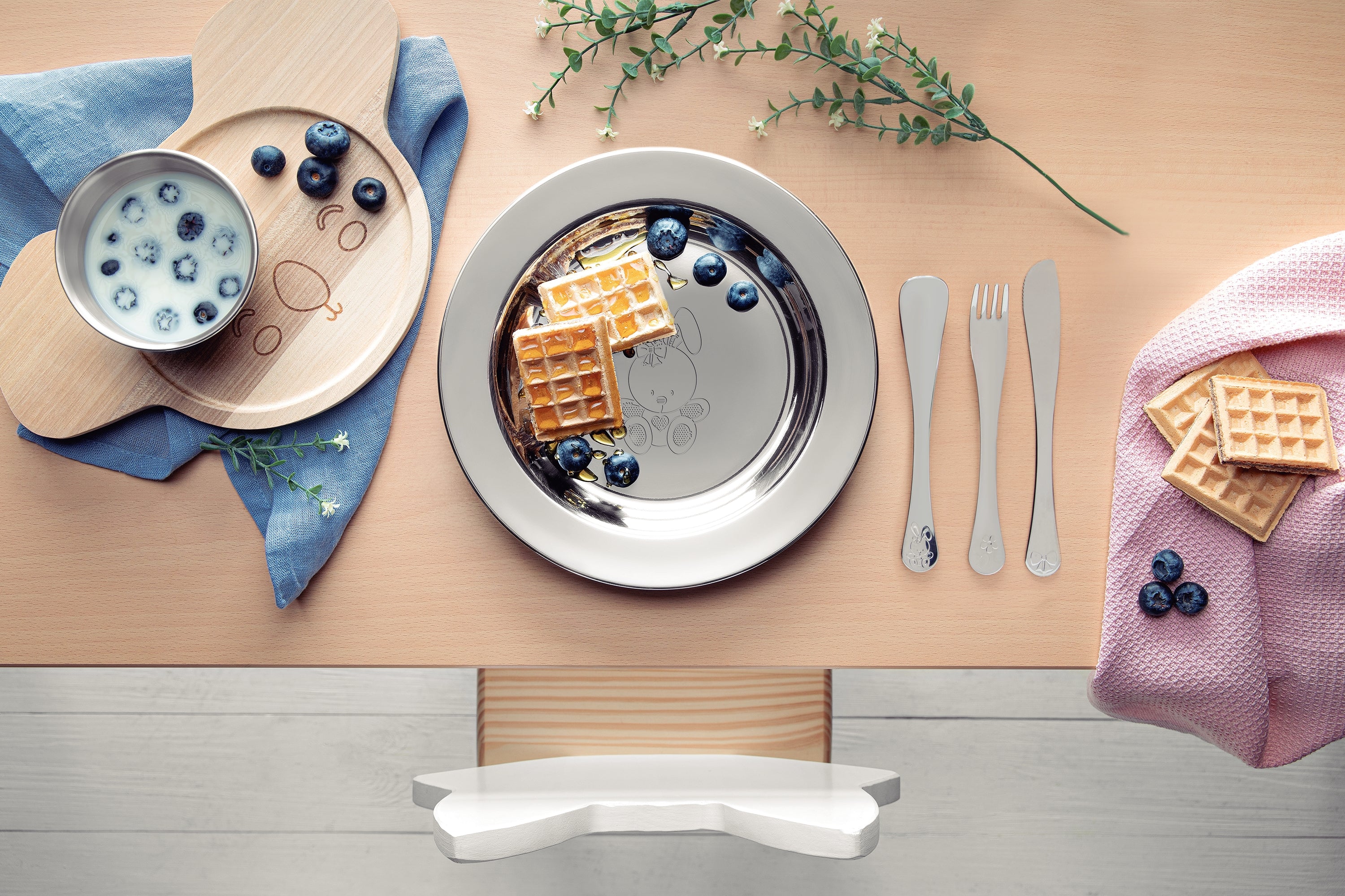 Recommended for children ages 36 months or older. Use only soap or detergent and a soft sponge to wash. Other products such as steel wool can scratch or damage the cutlery's shine. Rinse each piece well in order to completely remove the residue of the cleaning products that are abrasive and can damage stainless steel. Use warm water whenever possible as it renews the cutlery's shine. After washing, dry the tableware immediately otherwise the chemical substances in water (chlorine) can stain the tableware. Do not allow the tableware to rub against each other during washing and storage to prevent scratches Avoid contact with hot surfaces. They can cause the colours to fade. Do not store items in a humid place as it can cause stains. When using a dishwasher, we recommend removing the cutlery as soon as the rinse cycle is finished and drying them by hand.